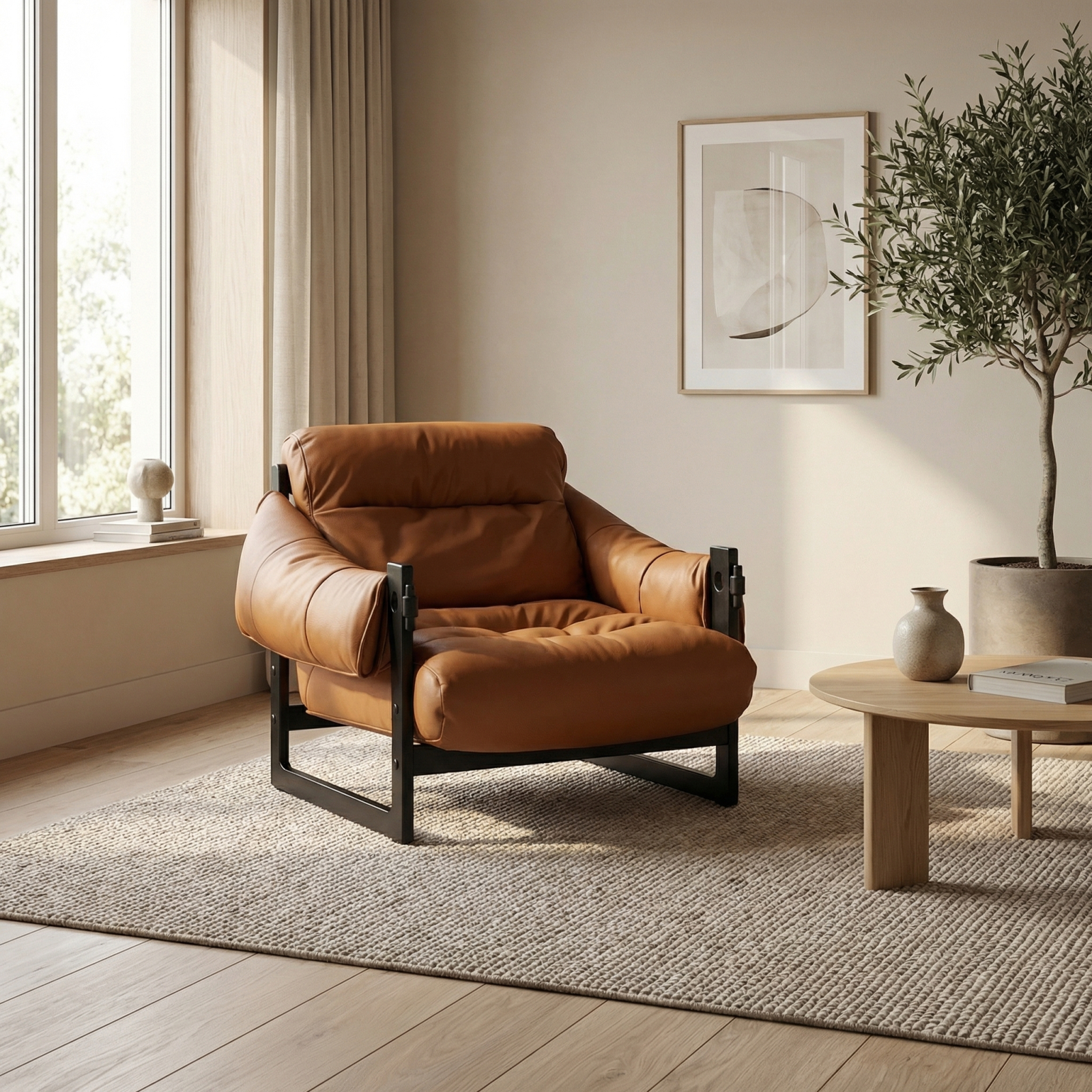 Arbo Fotoliu Lemn + Piele Ecologică Maro este o piesă de mobilier cu design contemporan, care îmbină eleganța liniilor moderne cu confortul generos și durabilitatea materialelor atent alese.