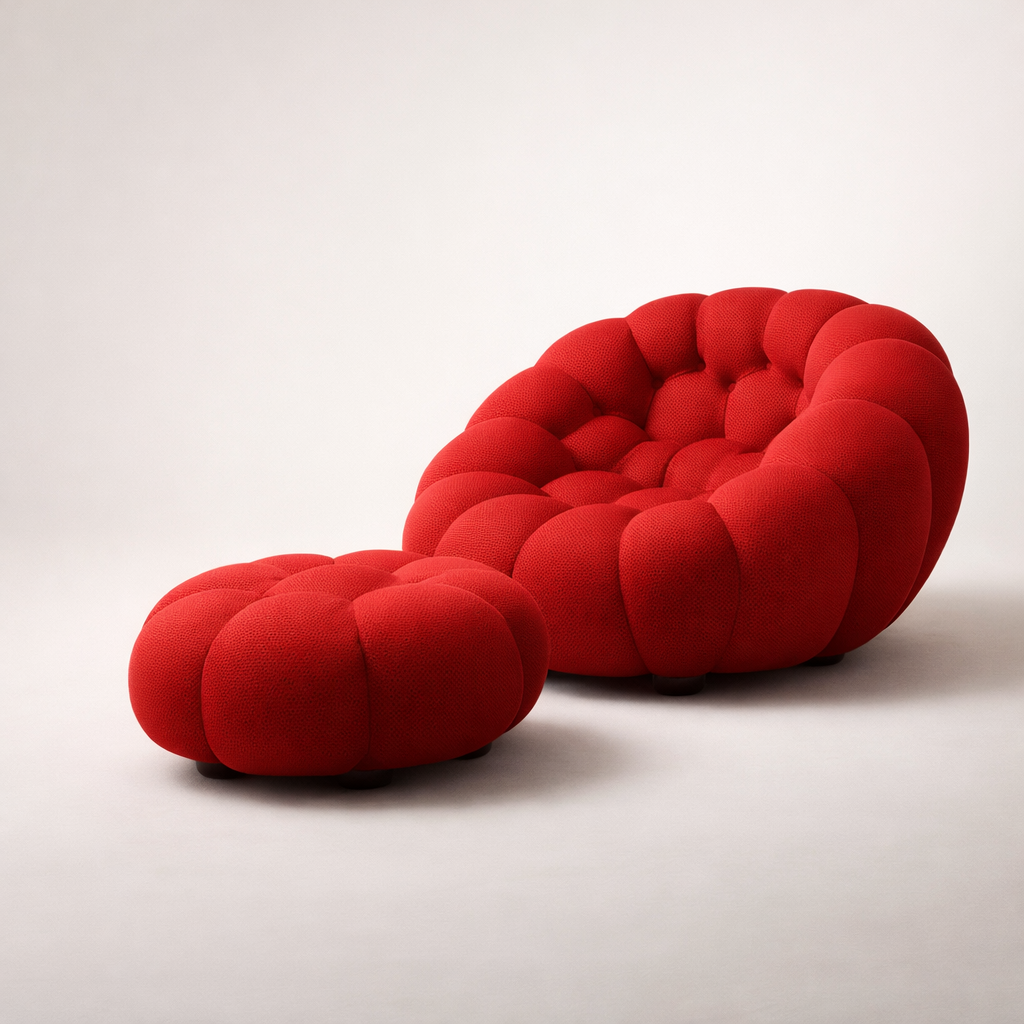 Set fotoliu + otoman Arbo Bubble Cloud Red, cu design tip Bubble și tapițerie micropique în nuanță roșu intens. Confort ridicat și aspect modern, ideal pentru interioare contemporane și spații creative. Dimensiuni: L122 x W105 x H98 cm.